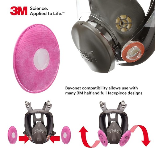- Bayonet-style connection fits a wide range of compatible half and full facepiece 3M™ Reusable Respirators